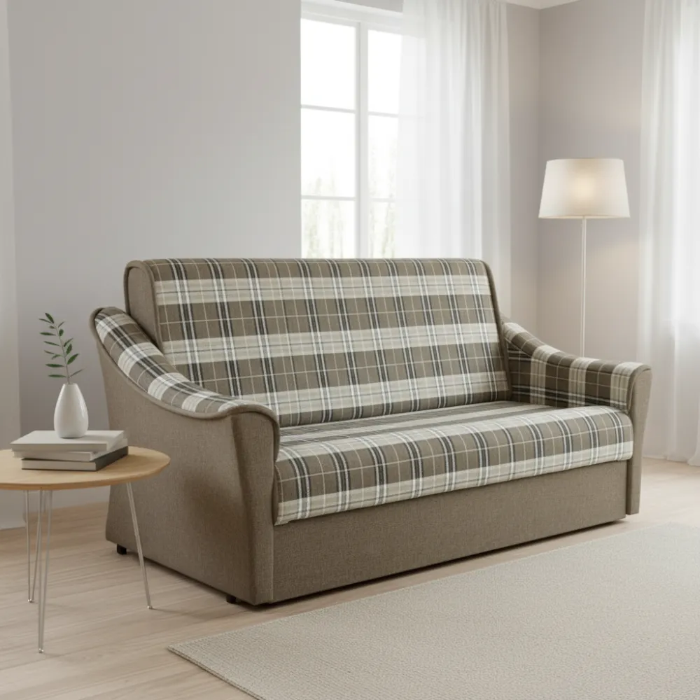 Матеріал оббивки: Тканина. Оббивка приємна на дотик і стійка до зношування, що забезпечує довговічність та легкість догляду. Колір виконання – у клітину – підкреслює естетичність моделі.
