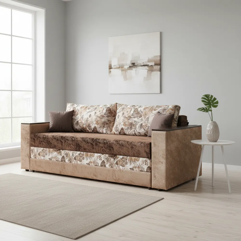 Функціональність: Зручний механізм трансформації дозволяє легко перетворити диван на повноцінне спальне місце розміром 195х145 см для комфортного відпочинку.