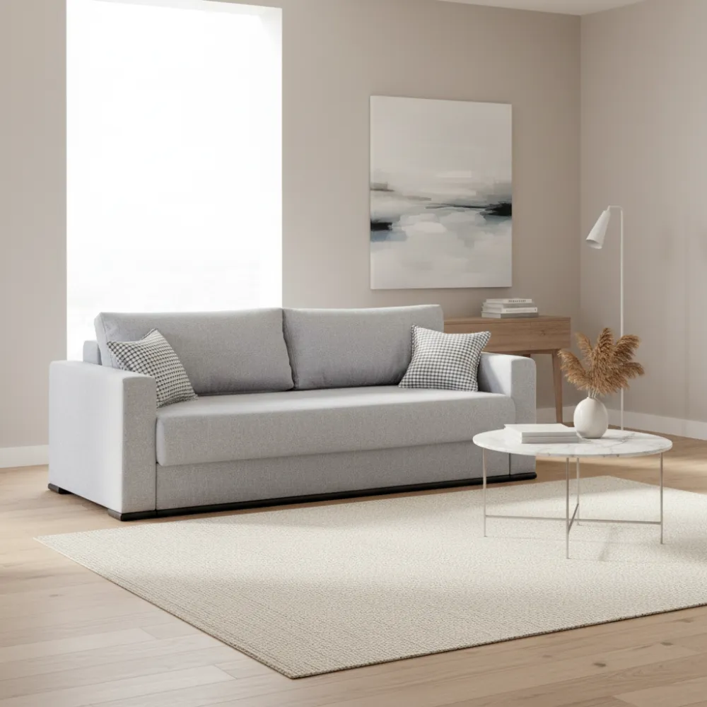 Функціональність: Зручний механізм трансформації дозволяє легко перетворити диван на повноцінне спальне місце розміром 150x190 см для комфортного відпочинку.