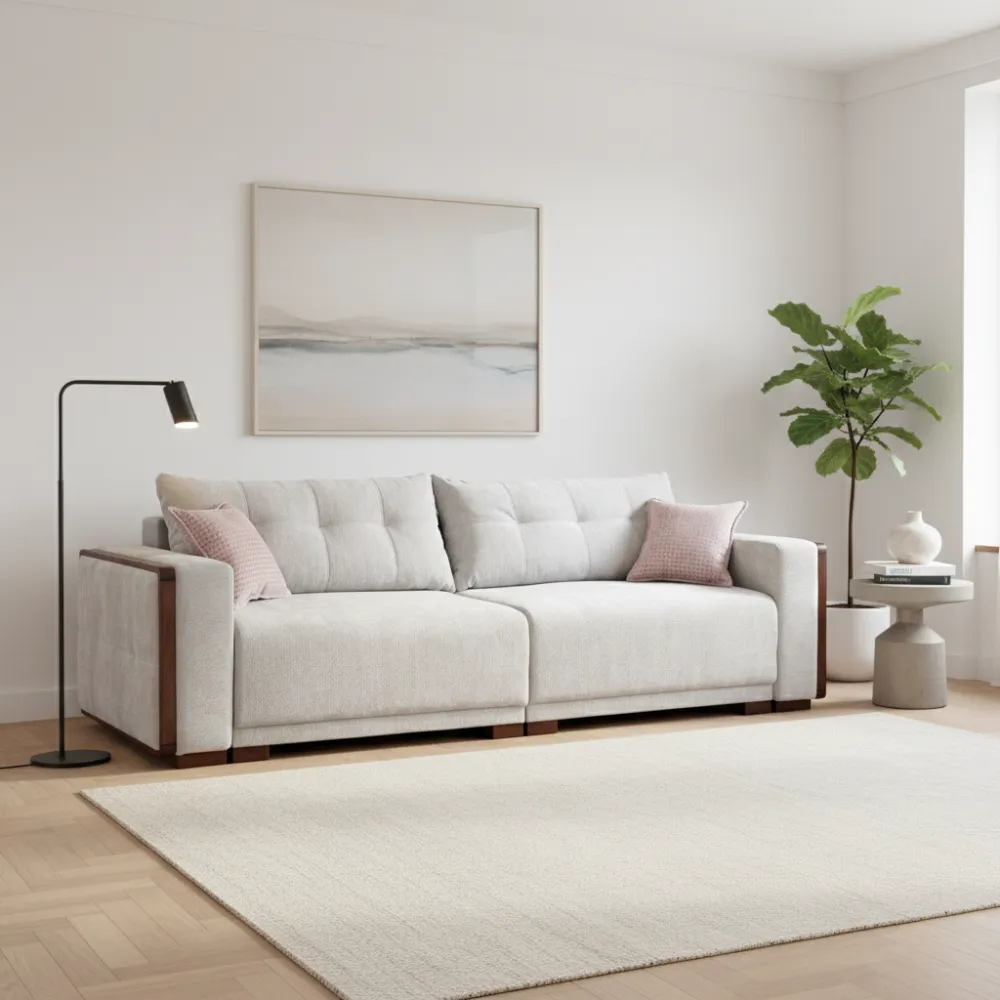 Каркас виконаний з дерева, що гарантує міцність та стійкість конструкції. Як наповнювач використовується пружинний блок, що створює оптимальний баланс м'якості та підтримки.
