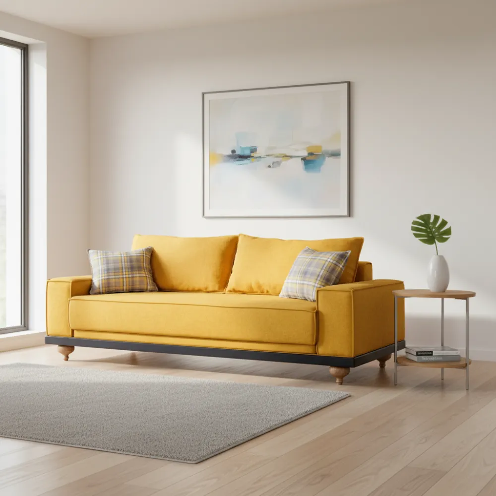 Матеріал оббивки: Тканина. Оббивка приємна на дотик і стійка до зношування, що забезпечує довговічність та легкість догляду. Колір виконання – жовті – підкреслює естетичність моделі.