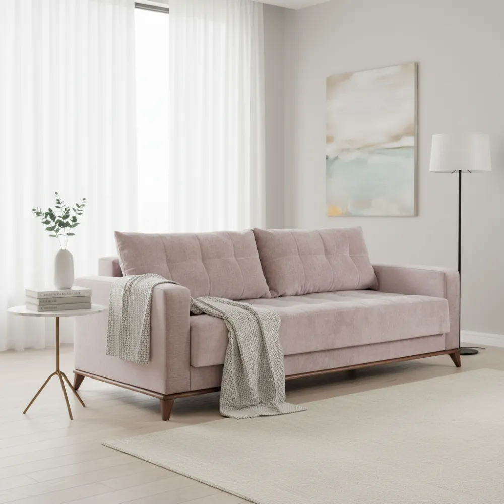 Функціональність: Зручний механізм трансформації дозволяє легко перетворити диван на повноцінне спальне місце розміром 150x190 см для комфортного відпочинку.