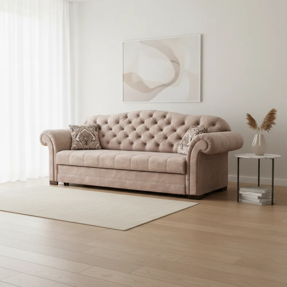 Функціональність: Зручний механізм трансформації дозволяє легко перетворити диван на повноцінне спальне місце розміром 135x185 см для комфортного відпочинку.