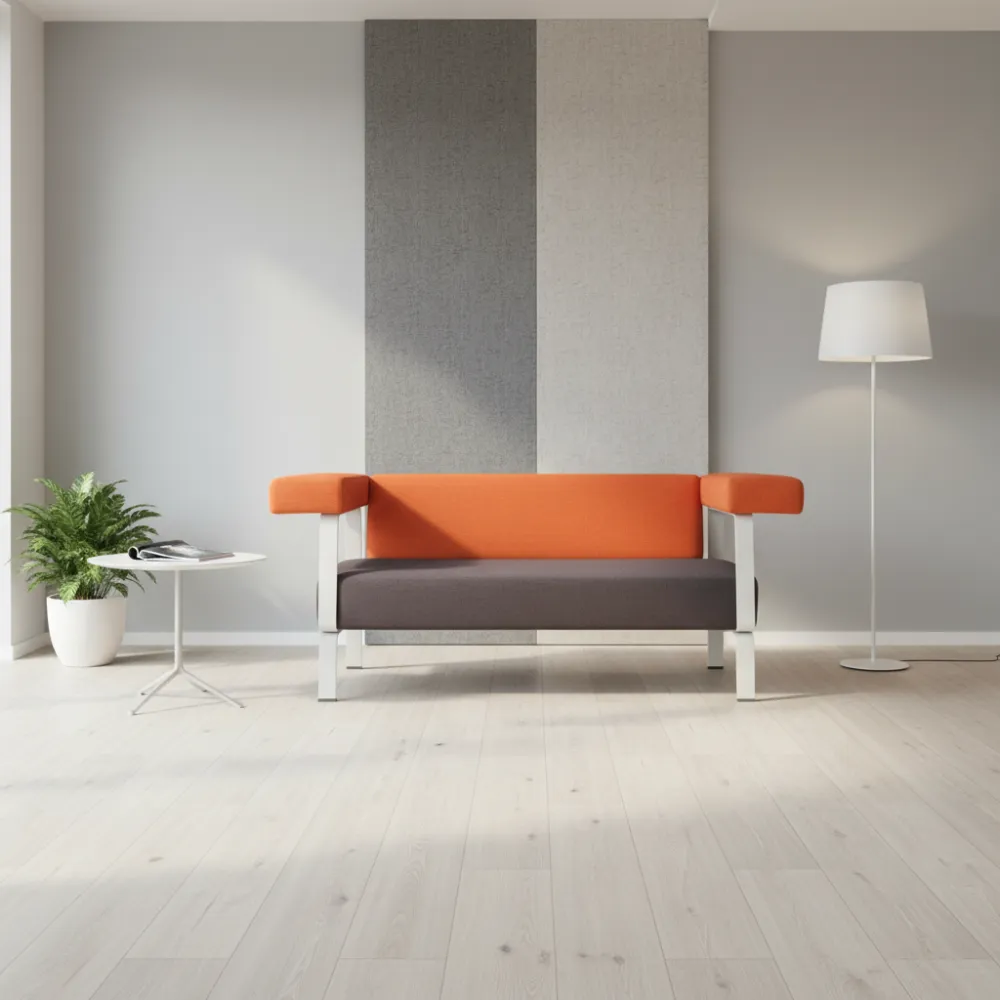 Аксіома 2 — стильний офісний диван довжиною 175 см, глибиною 78 см, висотою 77 см. Яскравий помаранчевий колір та чіткі форми підкреслюють його приналежність до стилю хай-тек.