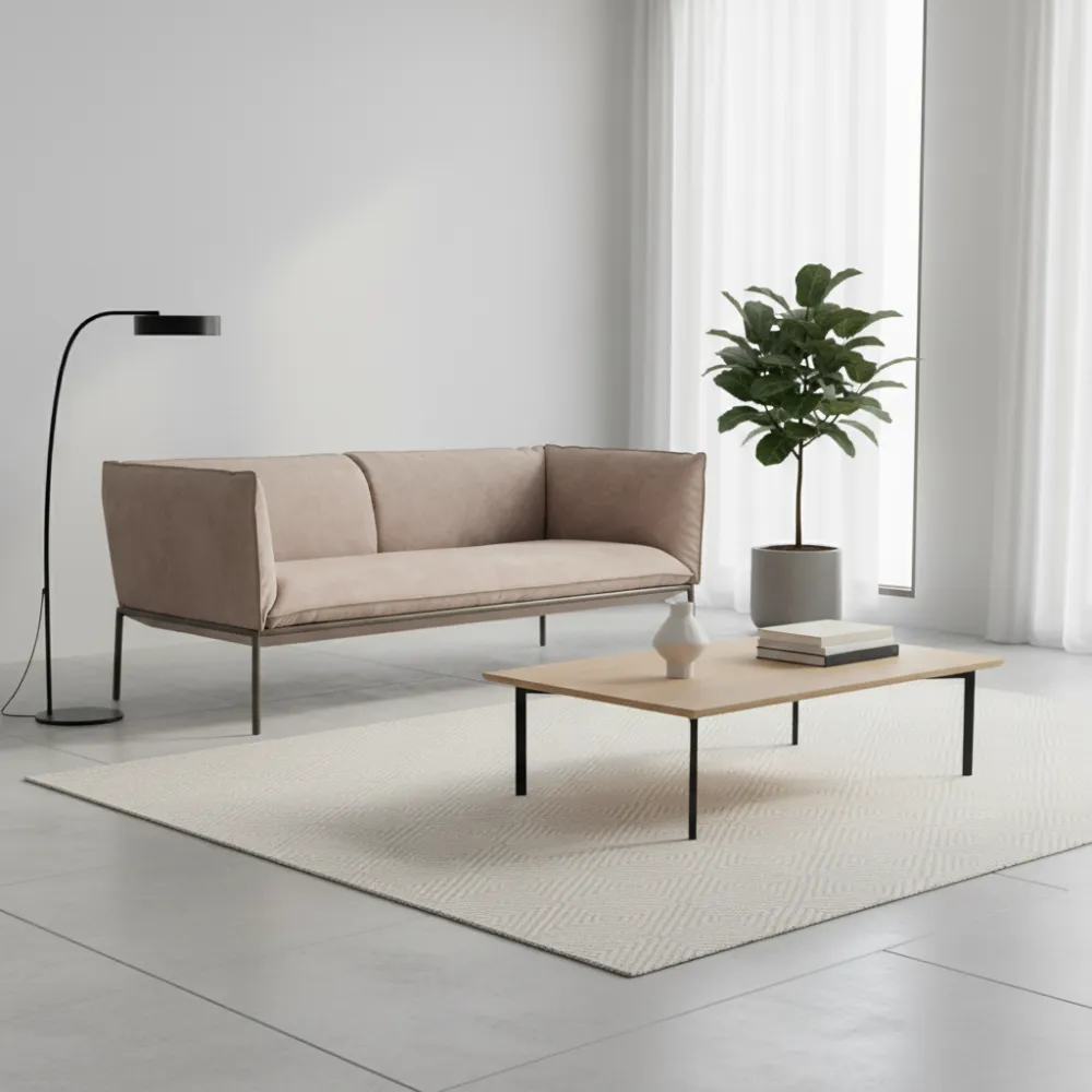 Оббивка в бежевому кольорі надає дивану нейтральний і теплий тон, що підходить для більшості інтер'єрів — від класичних приймальних до open-space офісів. Висока спинка та збалансована глибина (86 см) дозволяють зручно розміститися і відвідувачам, і співробітникам.