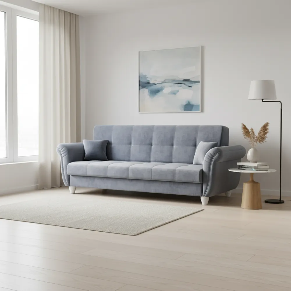 Функціональність: Зручний механізм трансформації дозволяє легко перетворити диван на повноцінне спальне місце розміром 130x195 см для комфортного відпочинку.