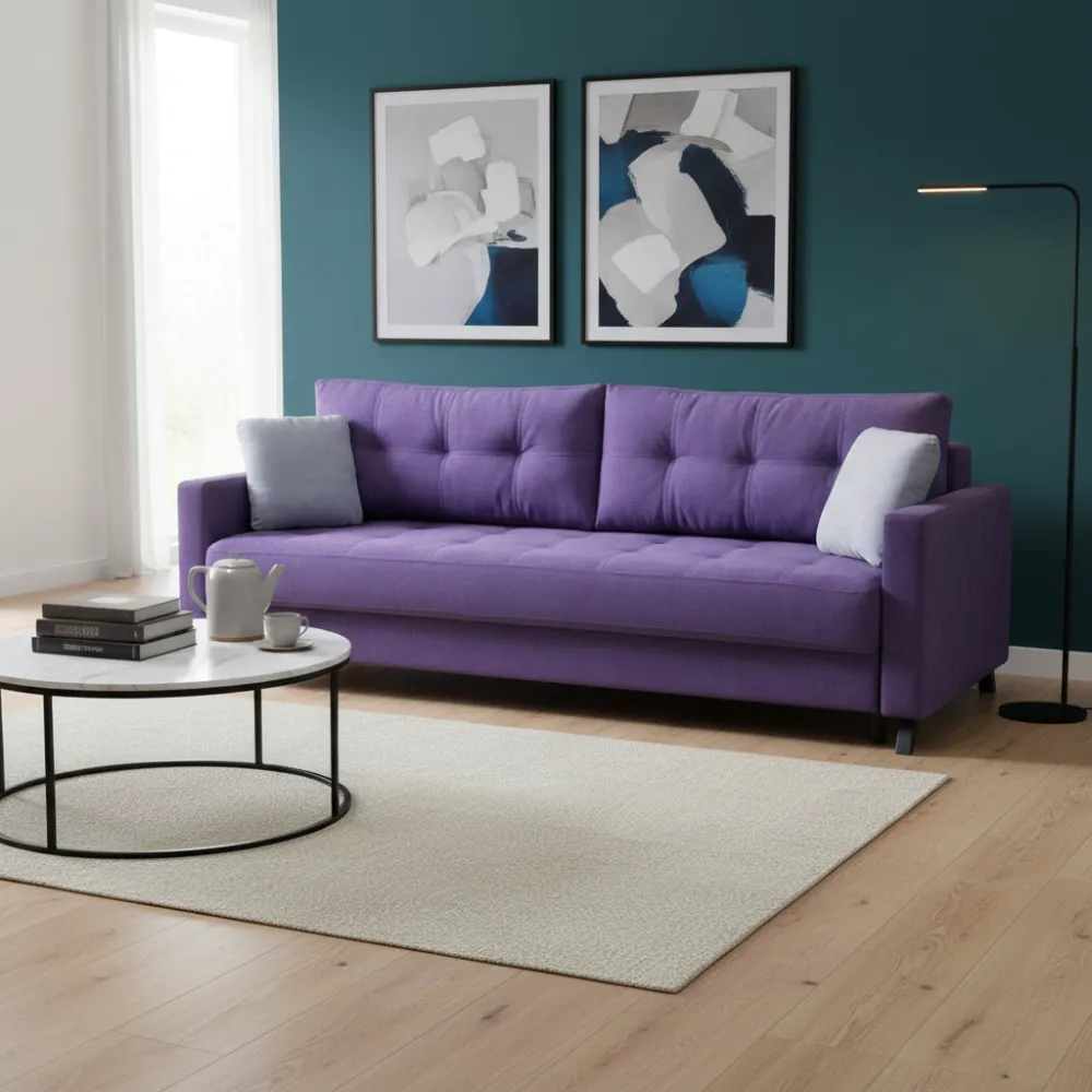 Матеріал оббивки: Тканина. Оббивка приємна на дотик і стійка до зношування, що забезпечує довговічність та легкість догляду. Колір виконання – фіолетові – підкреслює естетичність моделі.