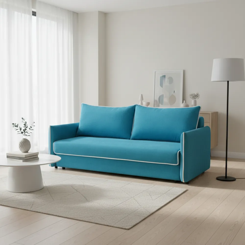 Функціональність: Зручний механізм трансформації дозволяє легко перетворити диван на повноцінне спальне місце розміром 155х195 см для комфортного відпочинку.