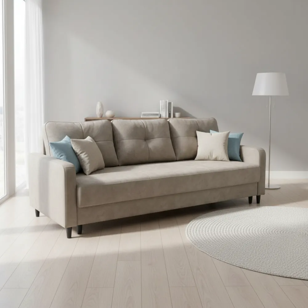 Функціональність: Зручний механізм трансформації дозволяє легко перетворити диван на повноцінне спальне місце розміром 140x195 см для комфортного відпочинку.