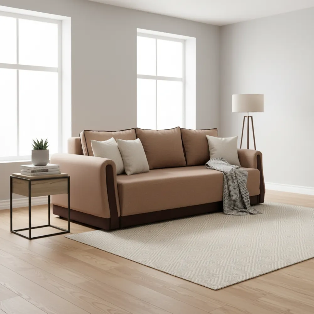 Функціональність: Зручний механізм трансформації дозволяє легко перетворити диван на повноцінне спальне місце розміром 145x190 см для комфортного відпочинку.
