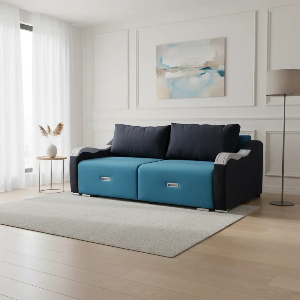 Функціональність: Зручний механізм трансформації дозволяє легко перетворити диван на повноцінне спальне місце розміром 155х195 см для комфортного відпочинку.