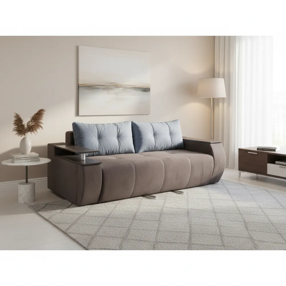Функціональність: Зручний механізм трансформації дозволяє легко перетворити диван на повноцінне спальне місце розміром 150x195 см для комфортного відпочинку.
