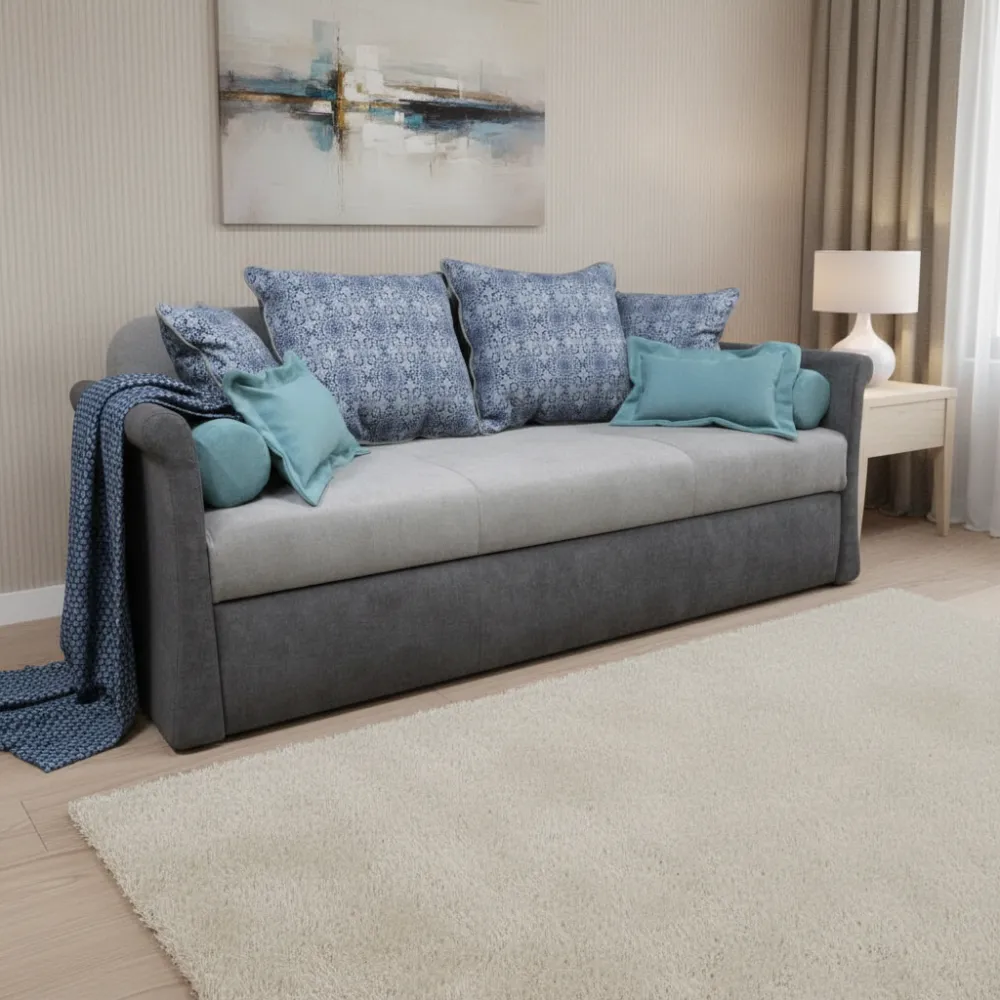 Функціональність: Зручний механізм трансформації дозволяє легко перетворити диван на повноцінне спальне місце розміром 145x190 см для комфортного відпочинку.