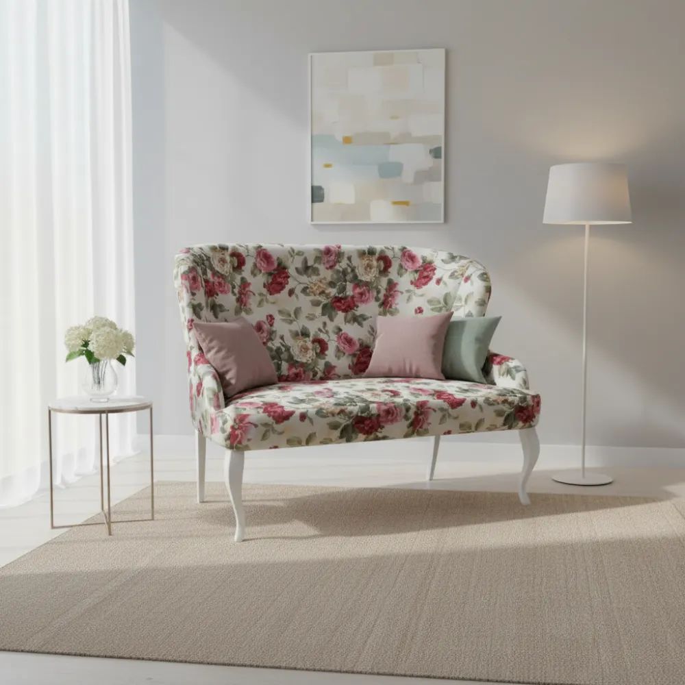 Матеріал оббивки: Тканина. Оббивка приємна на дотик і стійка до зношування, що забезпечує довговічність та легкість догляду. Колір виконання – квіти – підкреслює естетичність моделі.