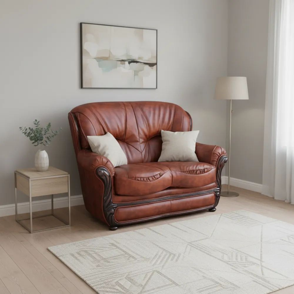 Матеріал оббивки: Шкіра. Оббивка приємна на дотик і стійка до зношування, що забезпечує довговічність та легкість догляду. Колір виконання – коричневі – підкреслює естетичність моделі.
