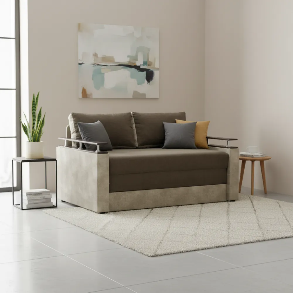 Матеріал оббивки: Тканина. Оббивка приємна на дотик і стійка до зношування, що забезпечує довговічність та легкість догляду. Колір виконання – коричневі – підкреслює естетичність моделі.