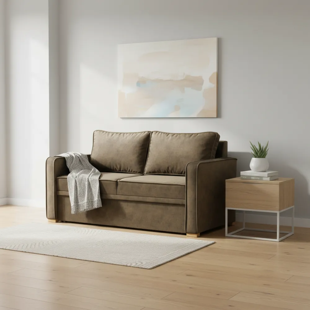 Матеріал оббивки: Тканина. Оббивка приємна на дотик і стійка до зношування, що забезпечує довговічність та легкість догляду. Колір виконання – коричневі – підкреслює естетичність моделі.