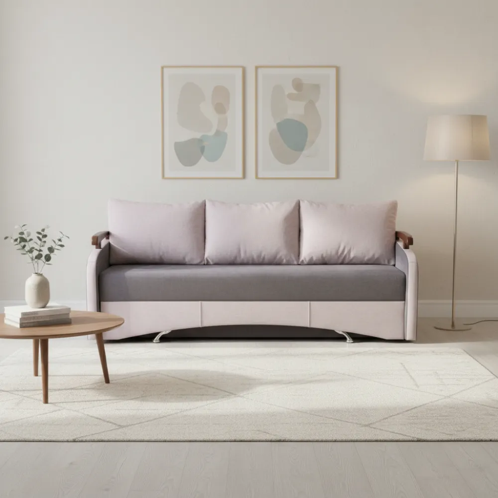 Функціональність: Зручний механізм трансформації дозволяє легко перетворити диван на повноцінне спальне місце розміром 135x190 см для комфортного відпочинку.