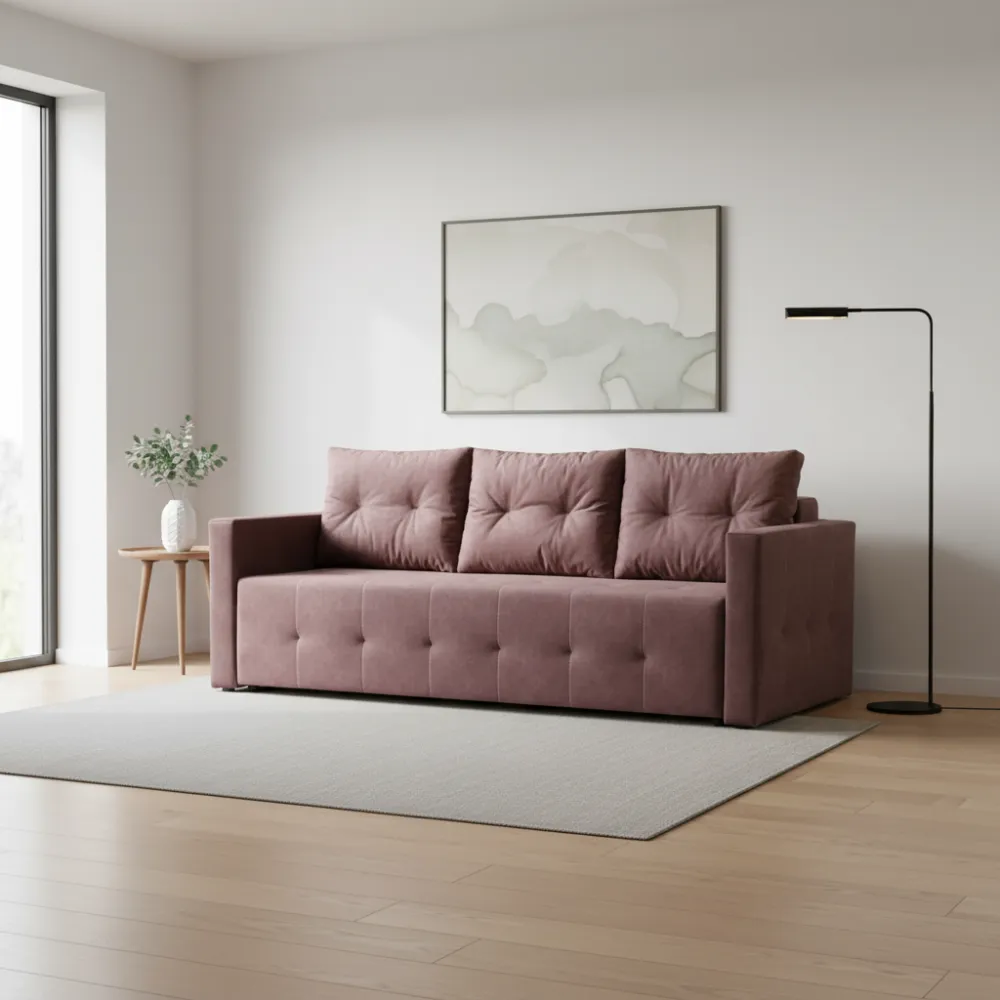 Функціональність: Зручний механізм трансформації дозволяє легко перетворити диван на повноцінне спальне місце розміром 140x190 см для комфортного відпочинку.