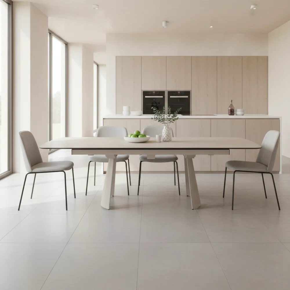 Керамічний стіл Вольтерра TML-1305 у відтінку делікато беж бежевий — це втілення елегантності та сучасних технологій, створене для тих, хто цінує стиль і комфорт у кожній деталі інтер’єру. Його стільниця з матової кераміки в поєднанні з гартованим склом в благородному відтінку делікато беж виглядає вишукано й водночас стримано, даруючи простору світло, гармонію та відчуття затишку. Міцна металева основа, пофарбована в тон, створює цілісний образ та підкреслює сучасний характер моделі.
