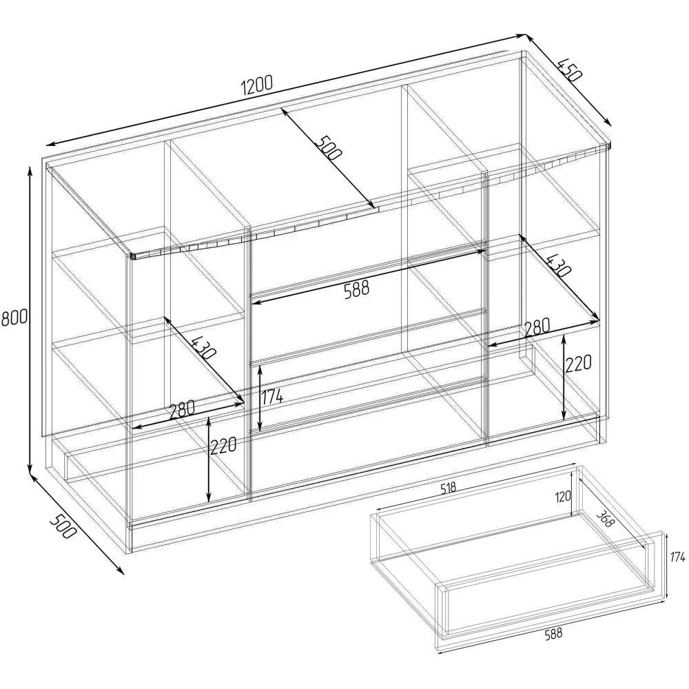 | Глибина, мм500 | Висота, мм800 | Ширина, мм1200 |