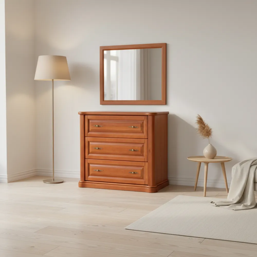 Розмір: В*Ш*Г - 1000*1100*500 Колір: Білий, Слонова кістка, Горіх, Темний горіх, Яблуня, Каштан.Матеріал: Масив вільхи.Цей комод це чудове доповнення інтер'єру кімнати або передпокою. Цей практичний предмет меблів точно вигідно заощадить вільне місце приміщення, додасть розкоші та респектабельності.