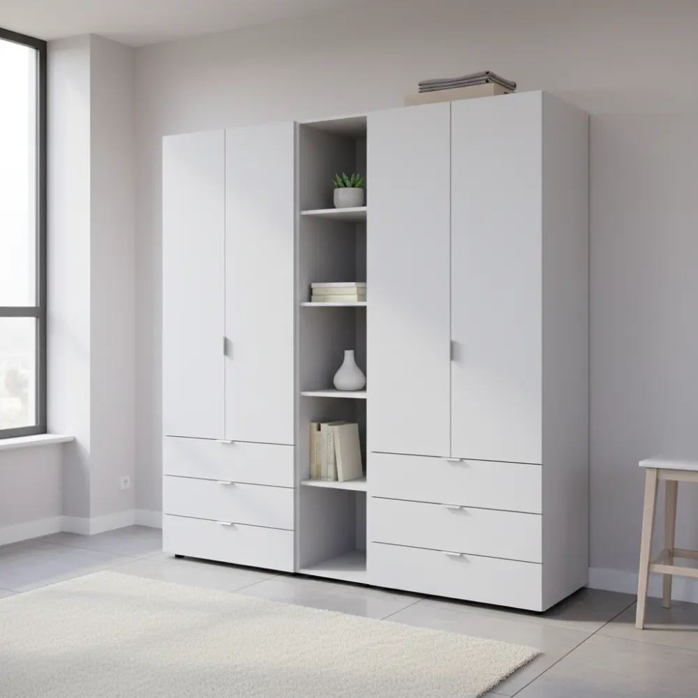 Характеристики Шафа Doros Гелар з Етажеркою Білий 2+2 ДСП 193.2х49.5х203.4 (42005031)