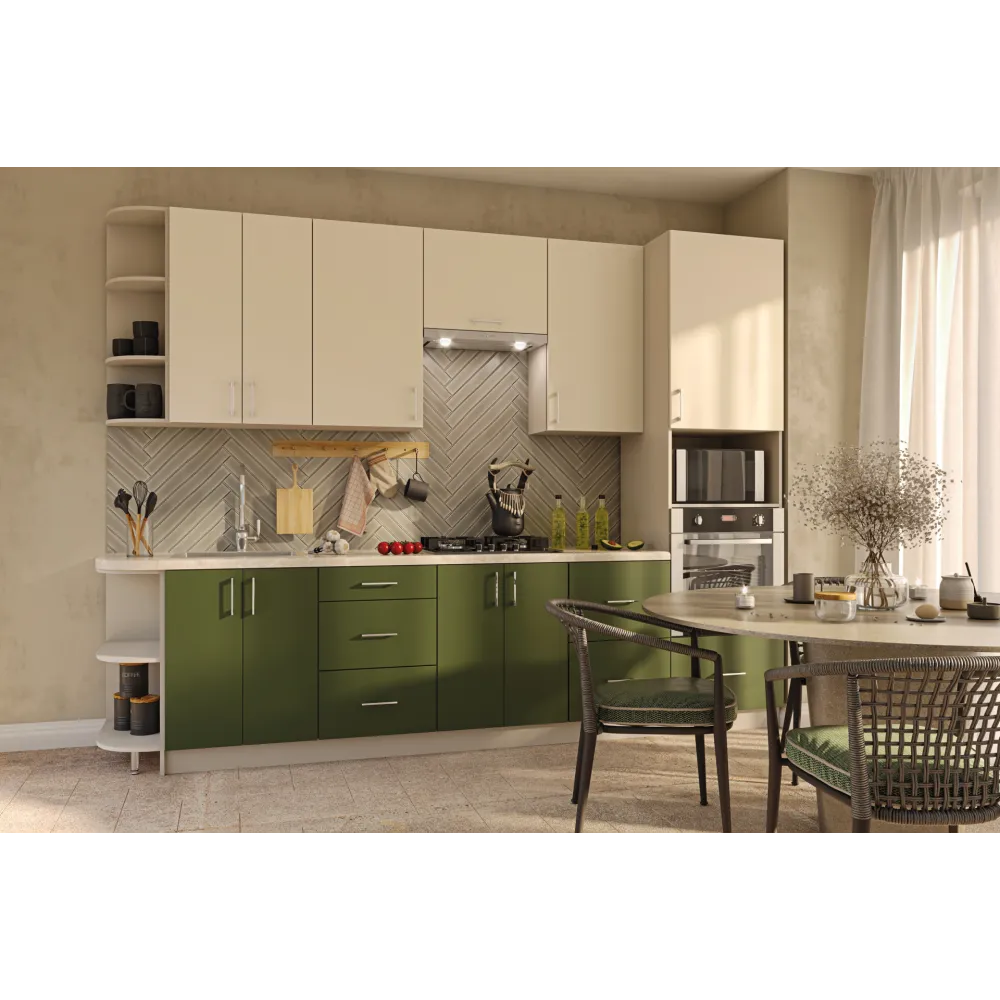 За бажанням Ви можете доукомплектувати кухню будь-якими нижніми або верхніми модулями, створивши необхідну конфігурацію і розмір.