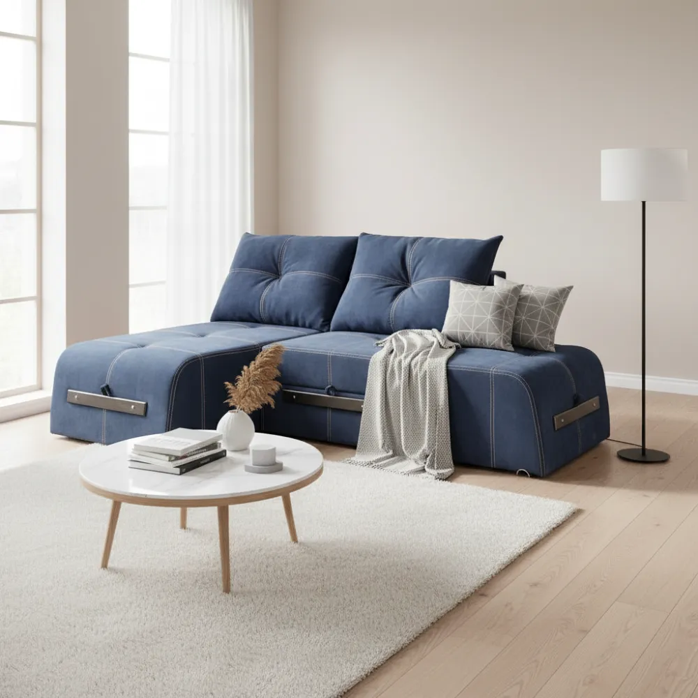 Меблі оснащені подвійним механізмом трансформації: ефектним «поворотним» і зручною «еврокнижкой». Кутовий диван розміром 2100х1500 мм в денний час змінюється вночі в комфортабельне ліжко з параметрами 1500х2050 мм. Вам буде легко організувати зону для розслабляючого відпочинку після робочого дня: ортопедичне спальне місце та розкладний механізм гідно показали себе при щоденному застосуванні.