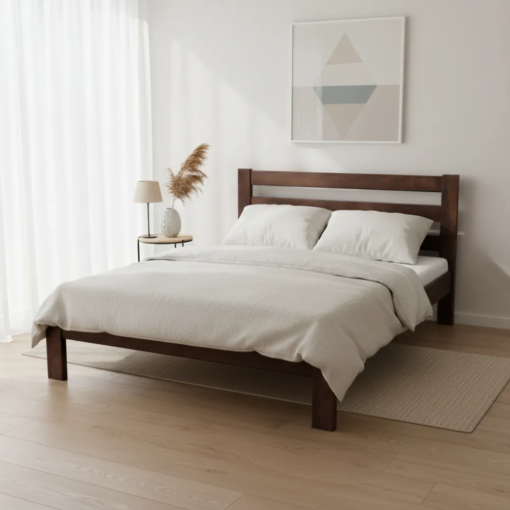 Розмір: Доступні розміри під матрац: 1200*2000, 1400*2000, 1600*2000; Висота ліжка 920мм; Колір: Горіх, Білий; Матеріал: Масив сосни Це ліжко зможе подарувати вам міцний, здоровий сон завдяки своїй якості, а також підвищити рівень комфорту до максимуму. Матеріал здатний витримувати великі щоденні навантаження без шкоди для зовнішнього вигляду та експлуатаційних властивостей. Ліжко гарантує вам комфорт, тепло та здоровий сон у вашому будинку.