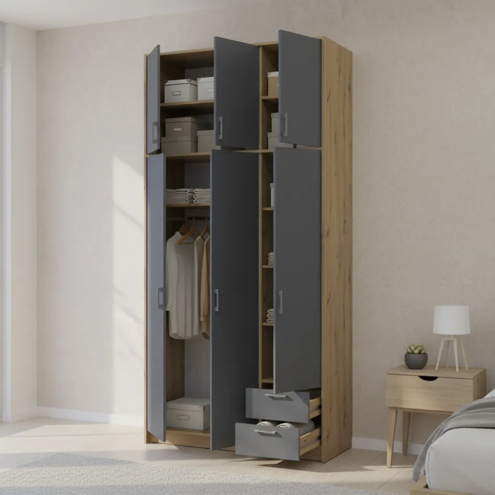 Шафа для одягу Doros Ронді з високою антресоллю Дуб Артизан/Графіт 3 ДСП 121х52х260 (42005187)