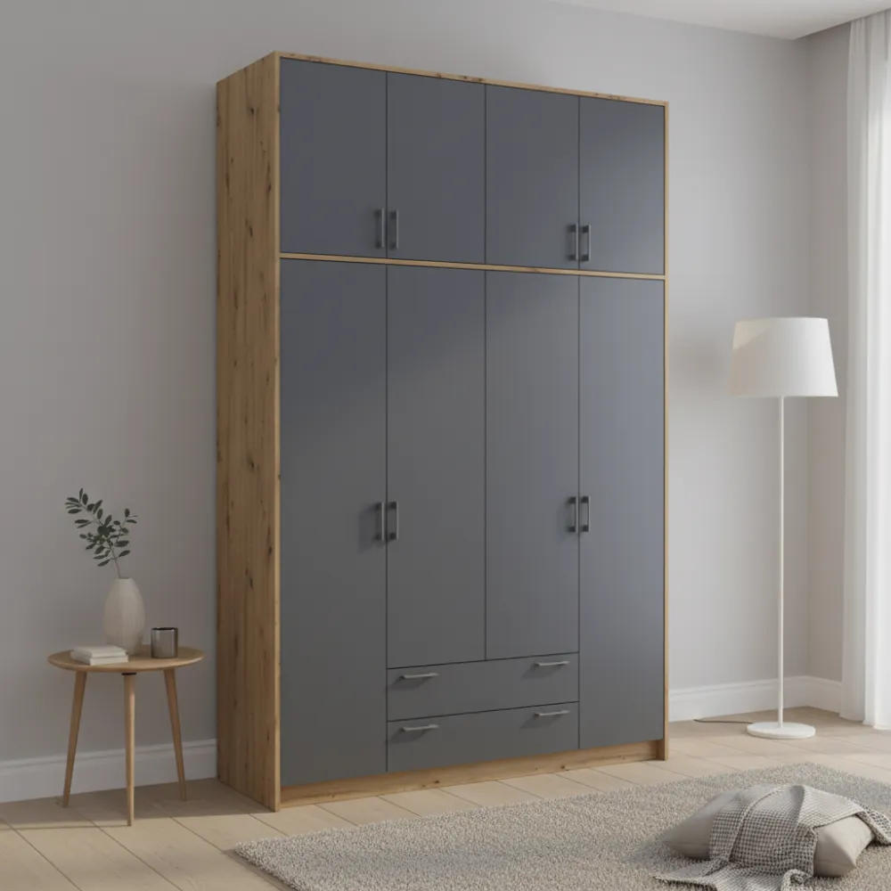 Шафа для одягу Doros Ронді з високою антресоллю Дуб Артизан/Графіт 4 ДСП 160х52х260 (42005188)