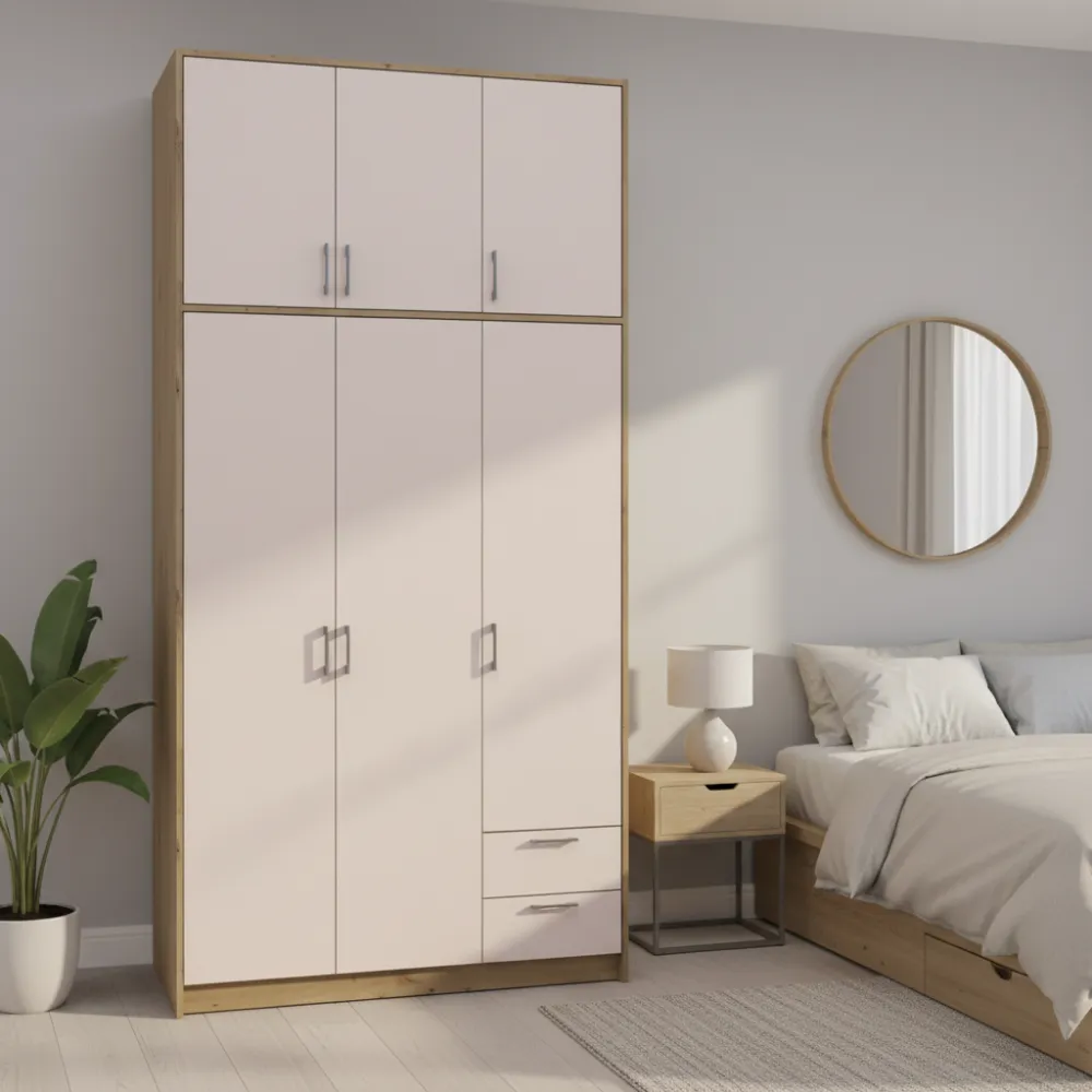 Шафа для одягу Doros Ронді з високою антресоллю Дуб Артизан/Кашемір 3 ДСП 121х52х260 (42005193)