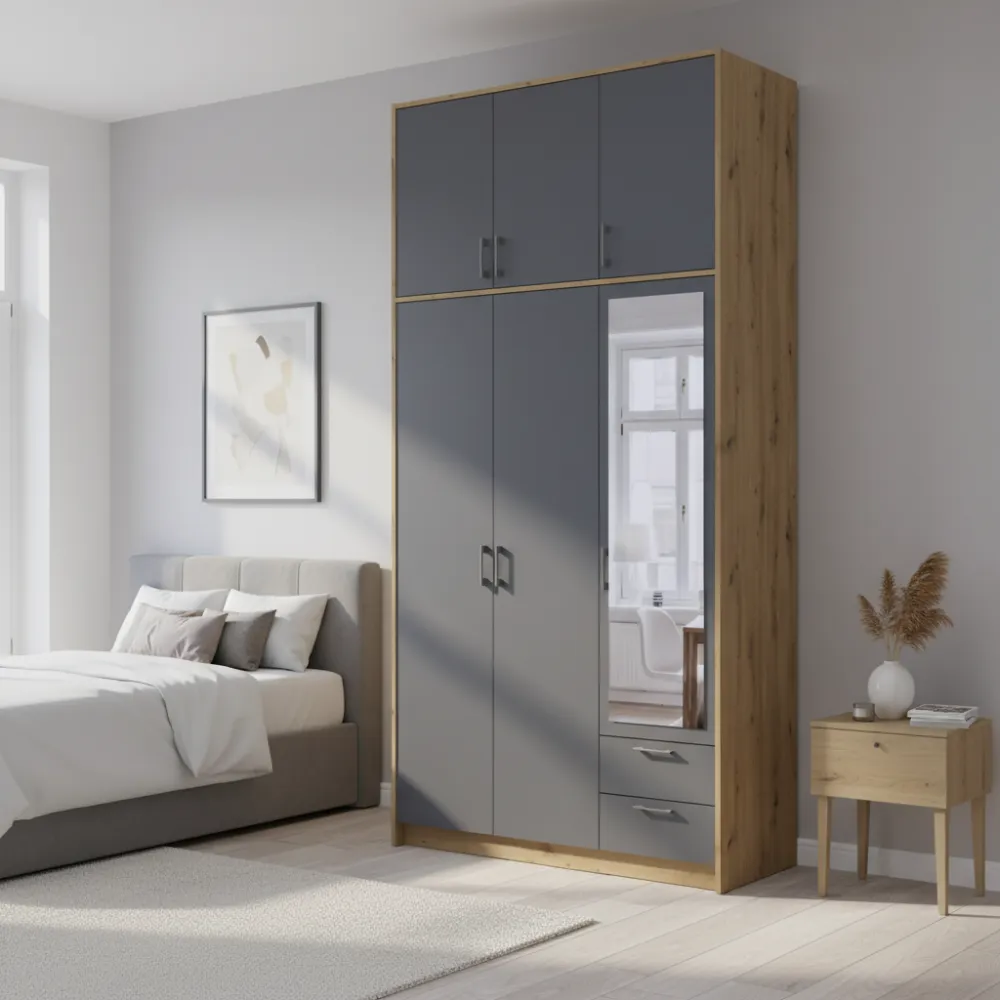 Шафа для одягу Doros Ронді з високою антресоллю та дзеркалом Дуб Артизан/Графіт 3 ДСП 121х52х260 (42005190)