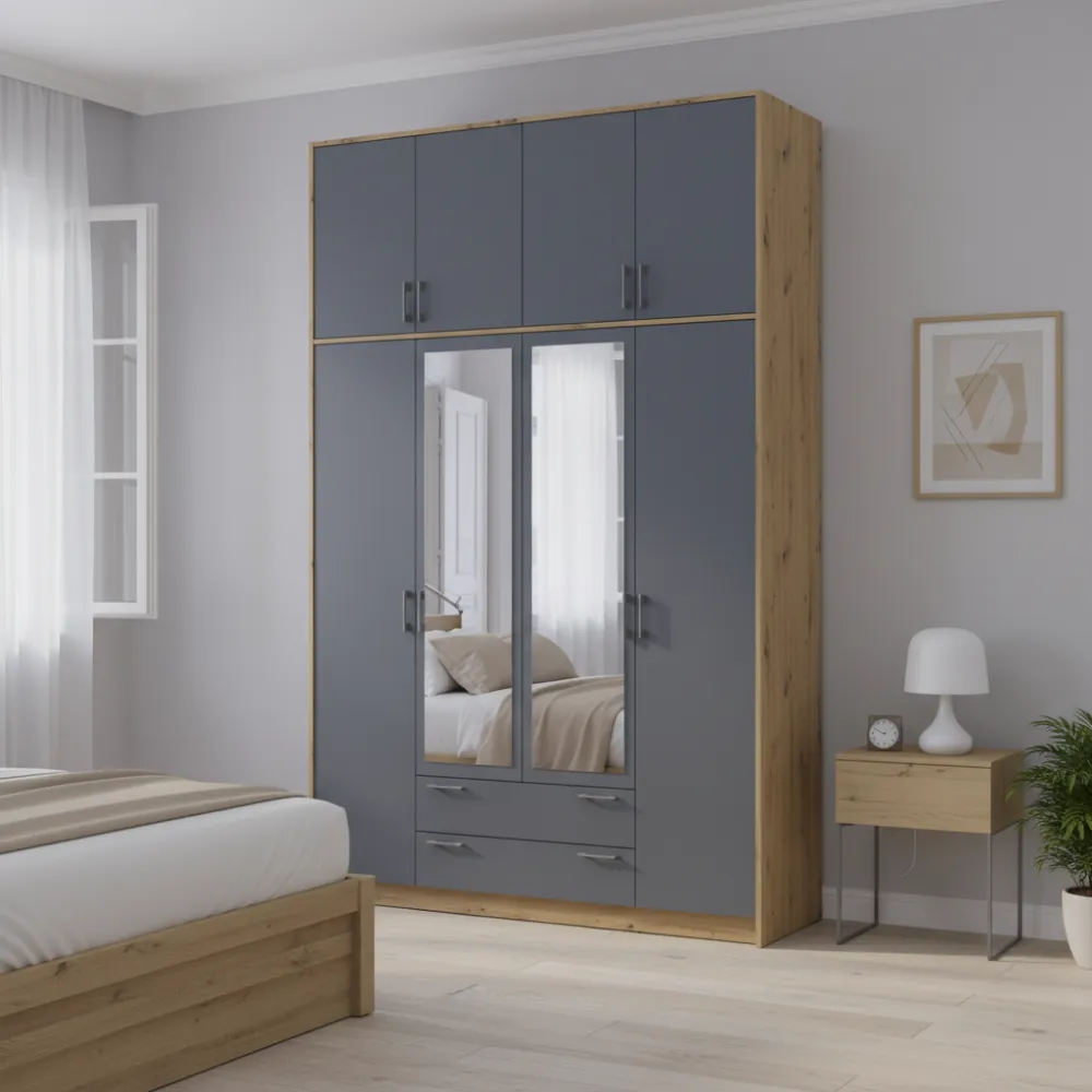 Характеристики Шафа для одягу Doros Ронді з високою антресоллю та дзеркалом Дуб Артизан/Графіт 4 ДСП 160х52х260 (42005191)