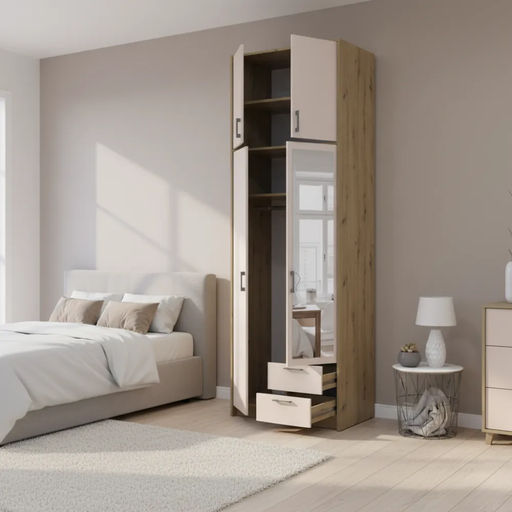 Характеристики Шафа для одягу Doros Ронді з високою антресоллю та дзеркалом Дуб Артизан/Кашемір 2 ДСП 82х52х260 (42005195)