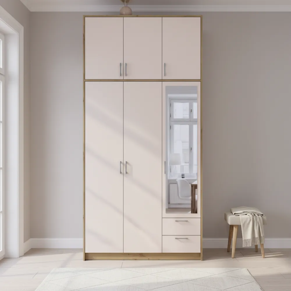 Шафа для одягу Doros Ронді з високою антресоллю та дзеркалом Дуб Артизан/Кашемір 3 ДСП 121х52х260 (42005196)