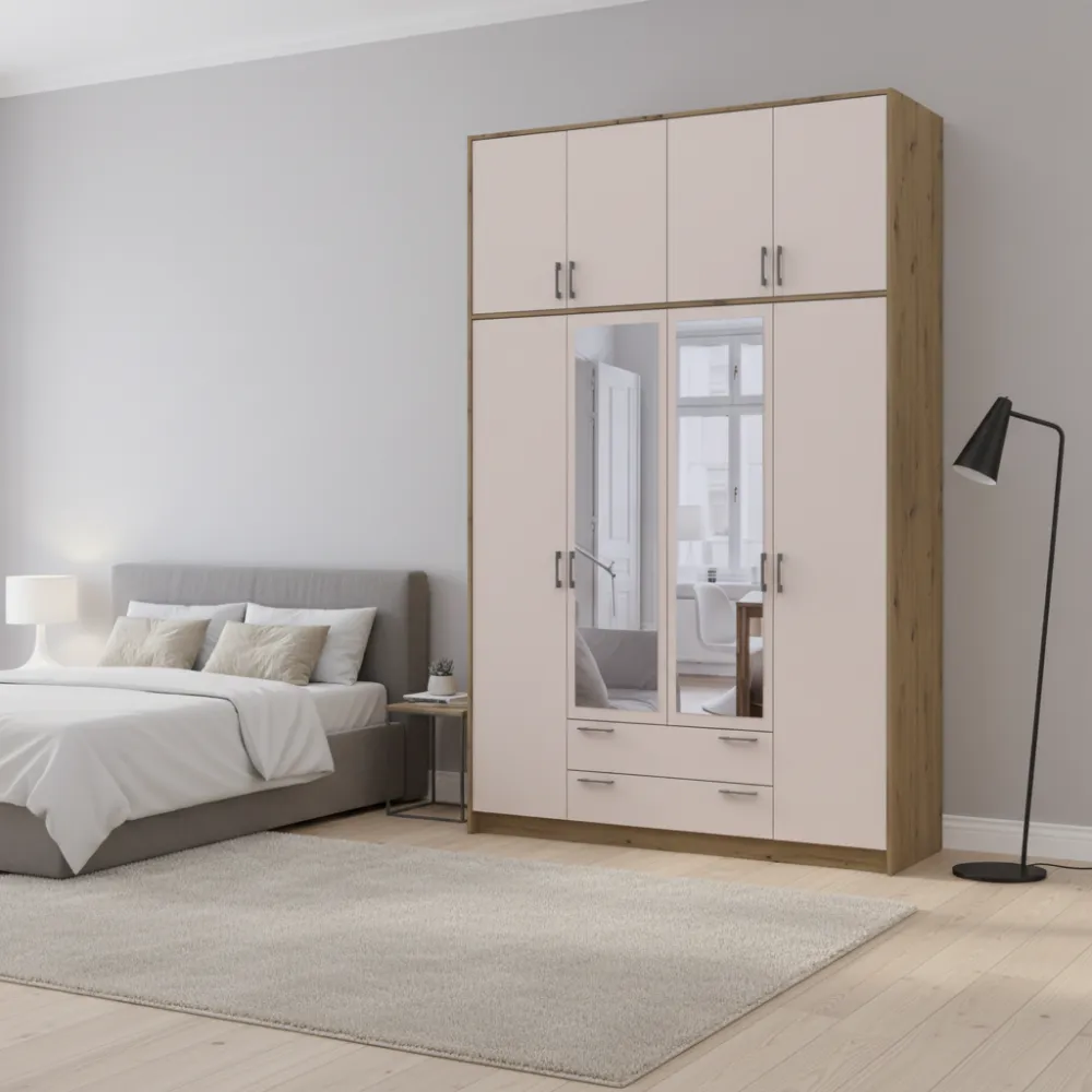 Характеристики Шафа для одягу Doros Ронді з високою антресоллю та дзеркалом Дуб Артизан/Кашемір 4 ДСП 160х52х260 (42005197)