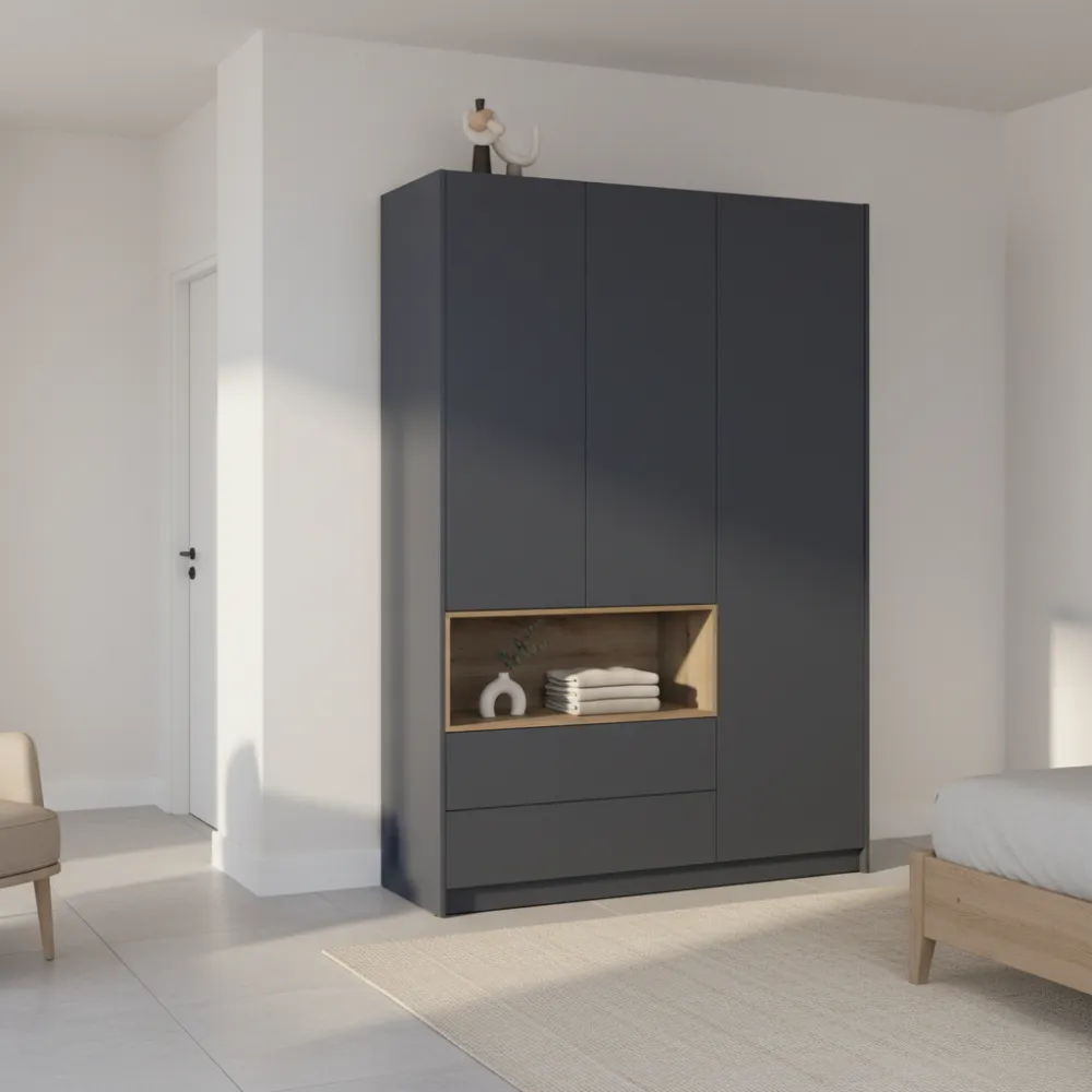 Характеристики Шафа для одягу з нішою Doros Дейл Графіт/Дуб Евок 3 ДСП 150х52х220 (80737723)