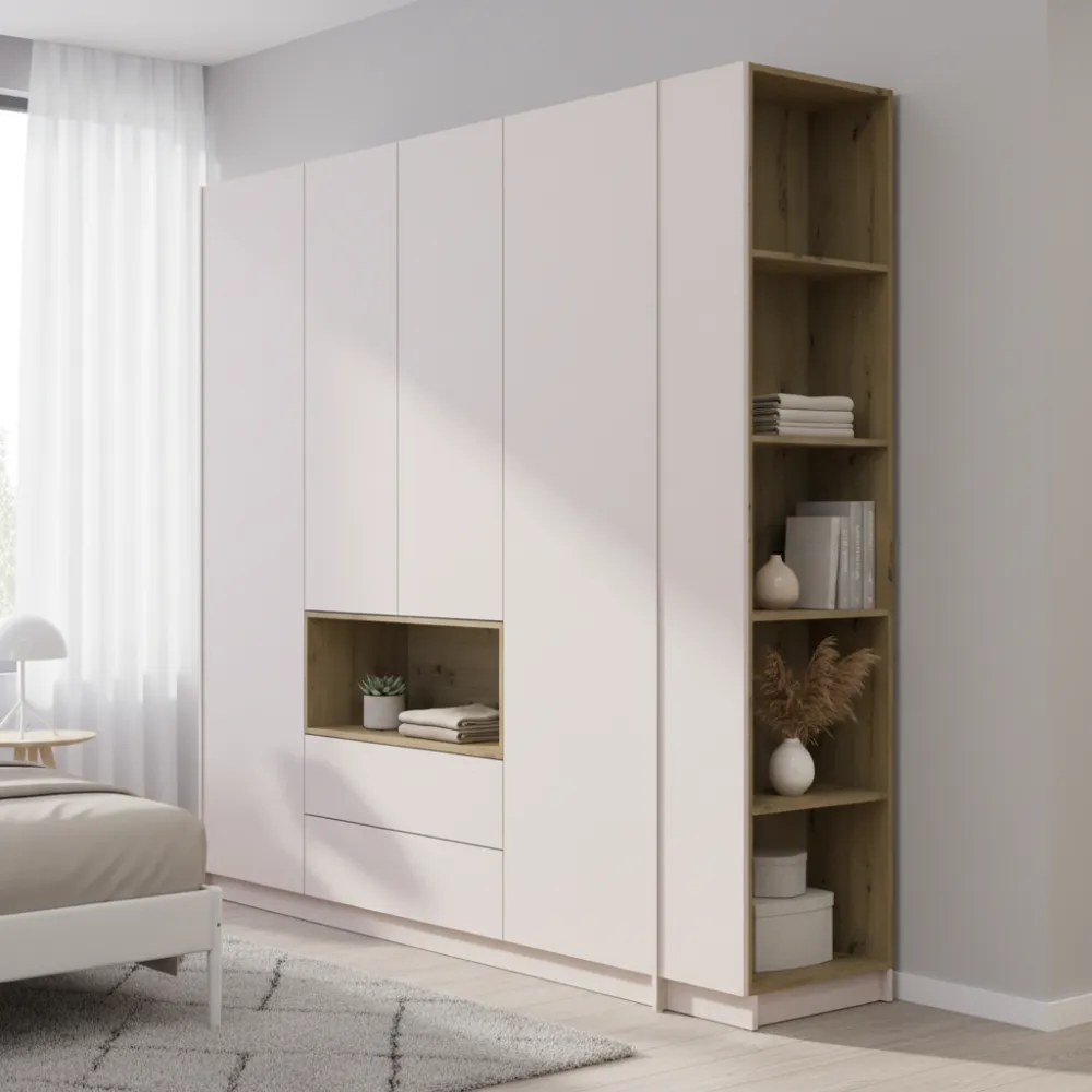 Шафа для одягу з нішою та етажеркою Doros Дейл Кашемір/Дуб Артизан 4 ДСП 234х52х220 (44900340)