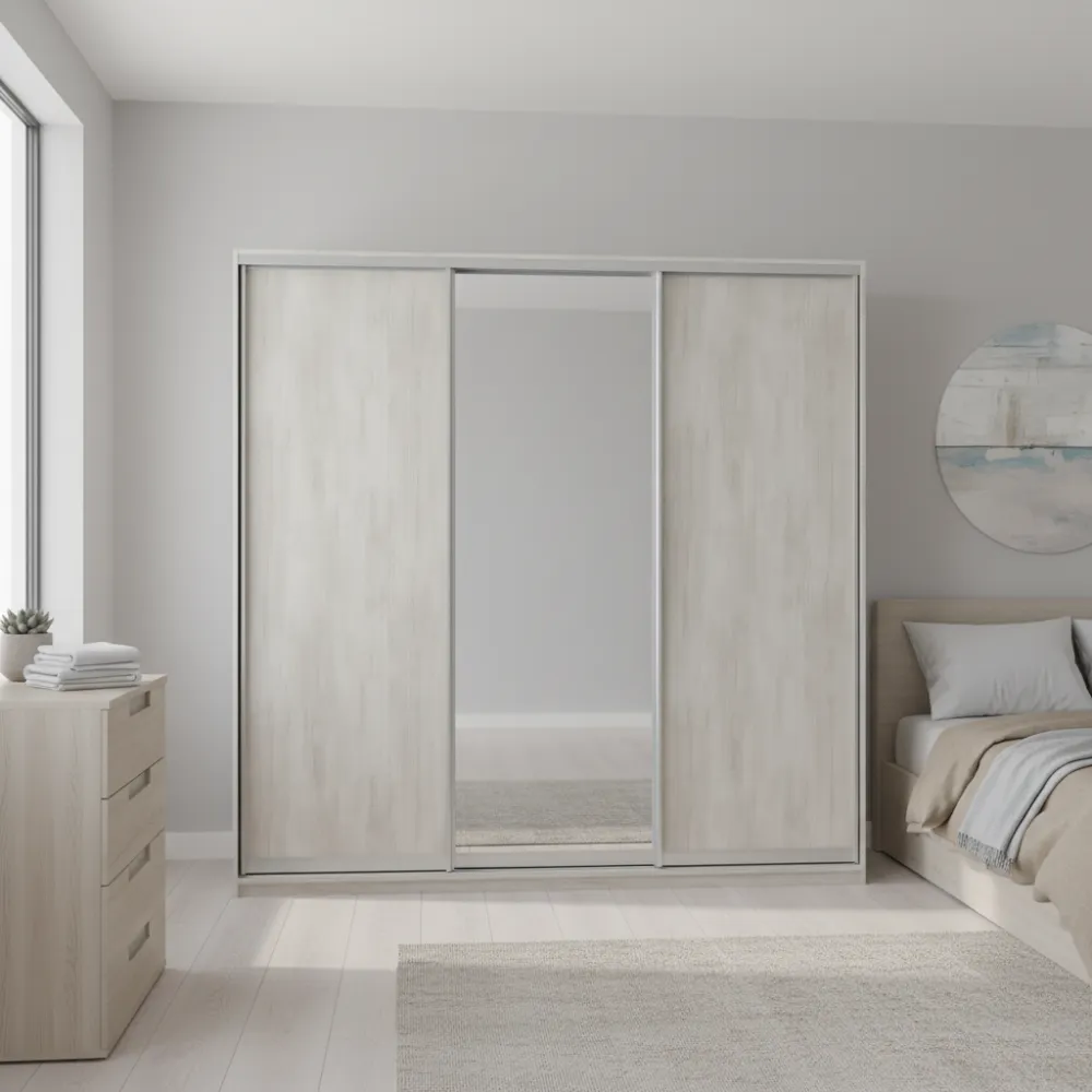 Характеристики Шафа купе Сіті Лайт Біле дерево 2 ДСП / 1 Дзеркало 225х60х225 (42002067)