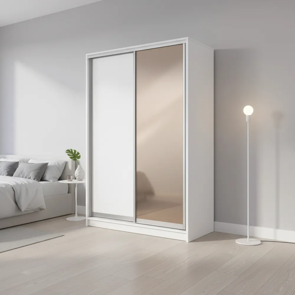 Шафа-купе дводверна 1500×600×2100 мм Білий ДСП + Дзеркало EШК 2.1.21.60.15