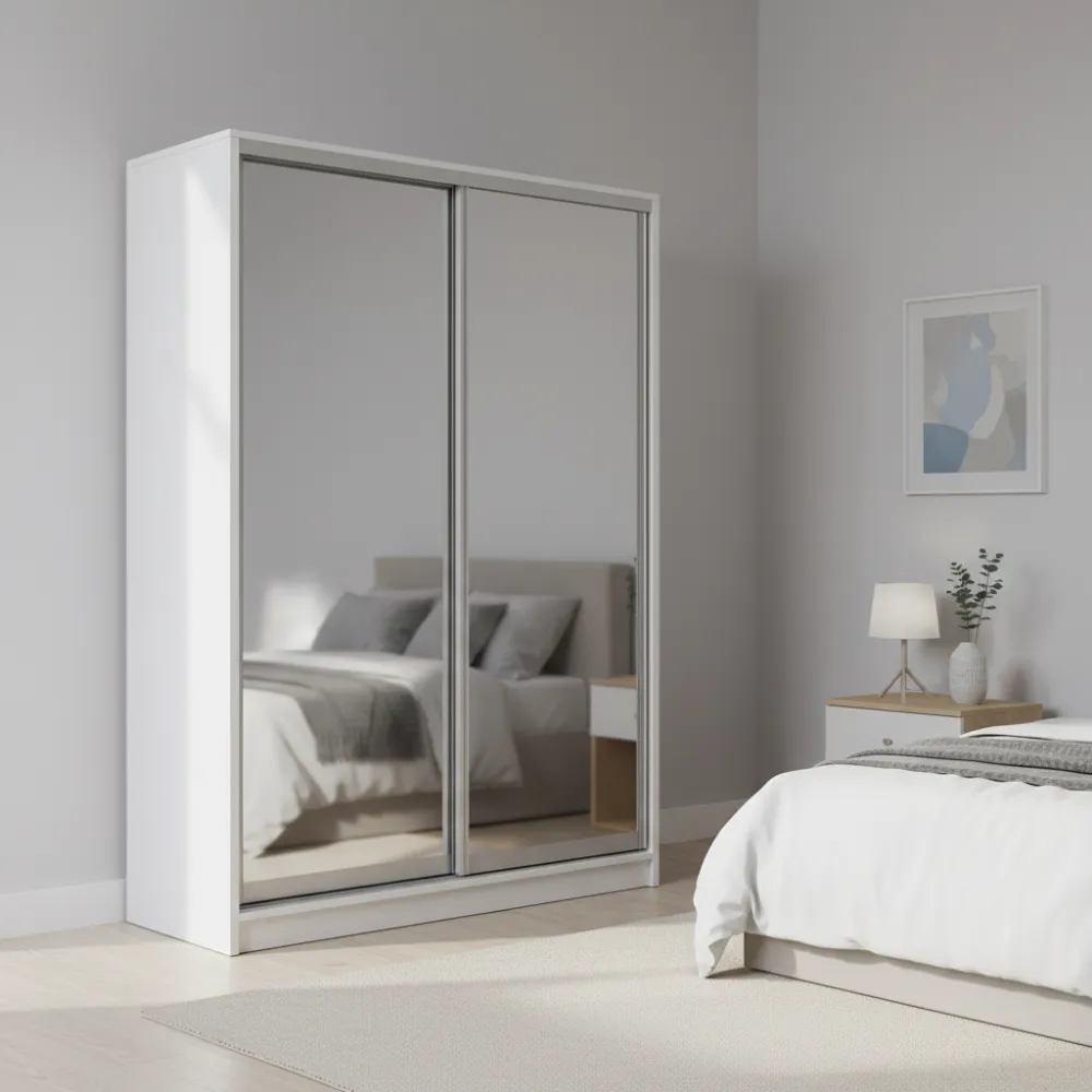 Шафа-купе дводверна 1500×600×2100 мм Білий Дзеркало EШК 2.2.21.60.15