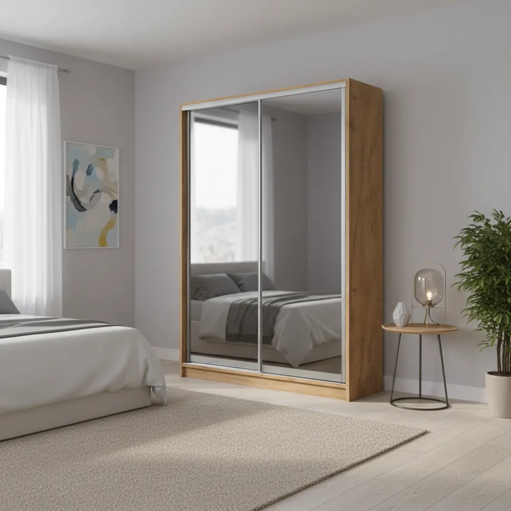 Шафа-купе дводверна 1700×450×2400 мм Дуб Крафт Золотий Дзеркало EШК 2.1.24.45.17.1