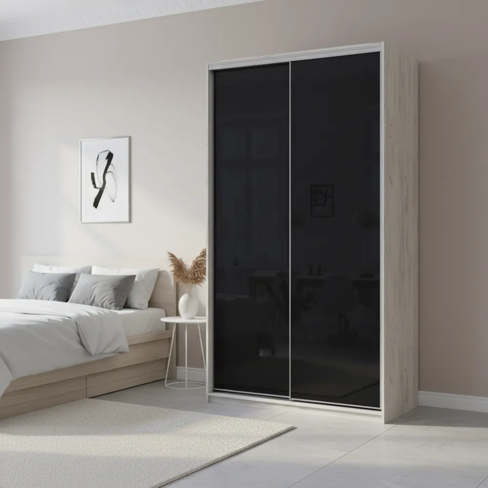 Шафа купе Сіті Лайт Слім Біле Дерево Скло Чорне 120х60х225 (44900298)