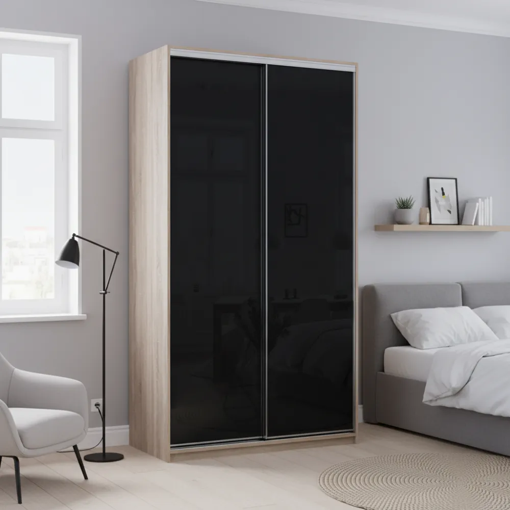 Шафа купе Сіті Лайт Слім Дуб Сонома Скло Чорне 120х60х225 (44900313)