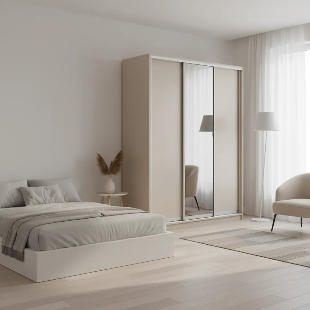 Характеристики Шафа-купе тридверна 1800×600×2400 мм Кашемір ДСП + Дзеркало EШК 3.4.24.60.18