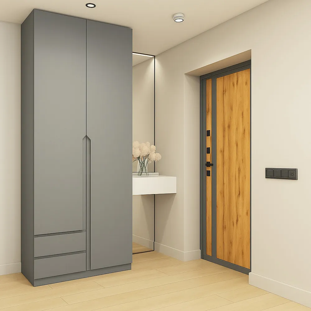 Характеристики Шафа розпашна ШР3 2100х1000х450 мм корпус ДСП Сіра Мишка фасад МДФ фарба RAL7004 (Сигнальний сірий) фрезеровані ручки V і J