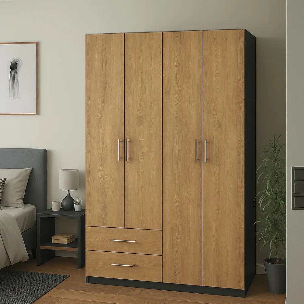 Шафа розпашна ШР5 2100х1200х450 мм корпус ДСП Антрацит фасад ДСП Дуб Крафт Золотий