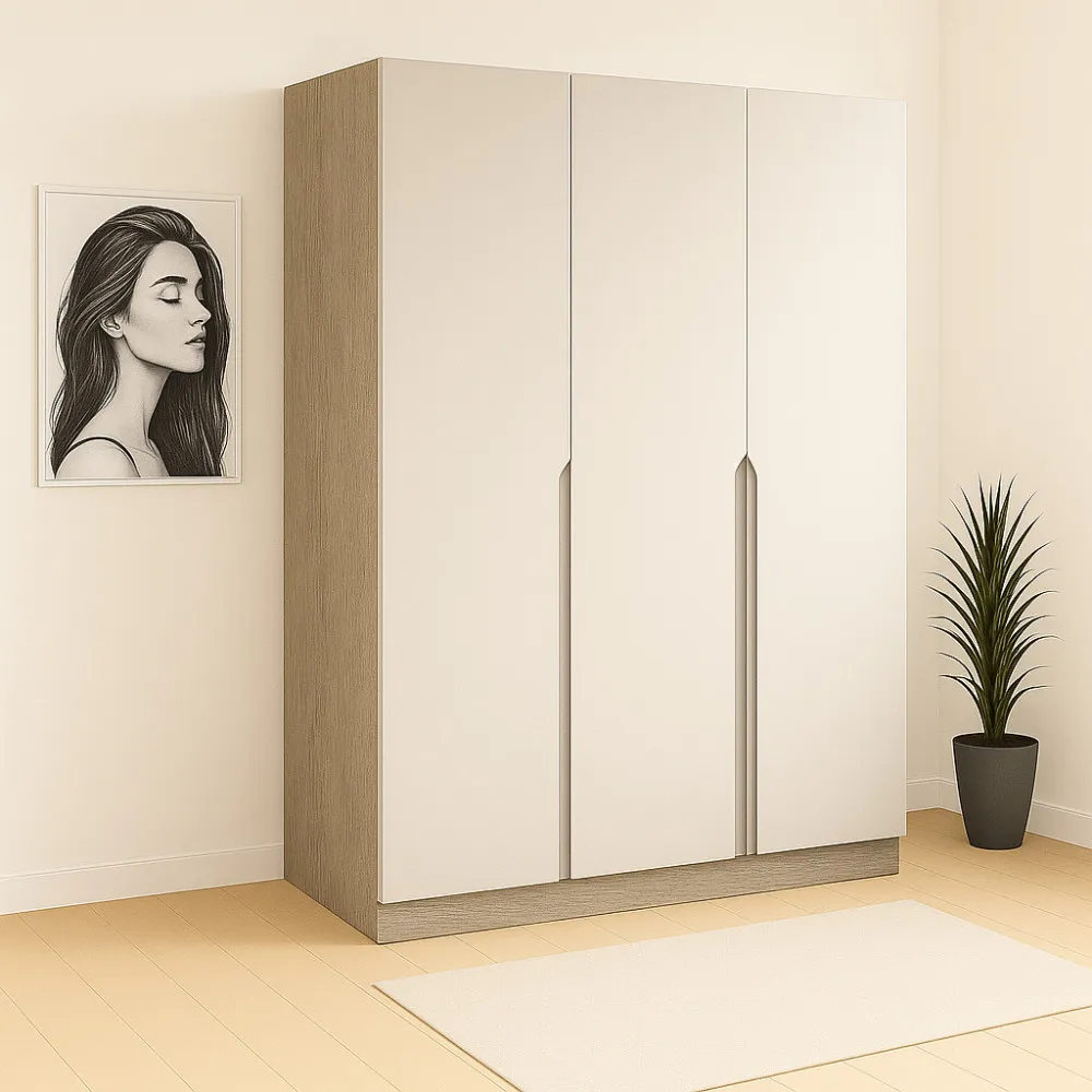 Характеристики Шафа розпашна ШР6 2100х1400х450 мм корпус ДСП Дуб Вінтаж Оксид фасад МДФ фарба NCS S 2002-Y50R (Шовковистий мат) фрезерована ручка V